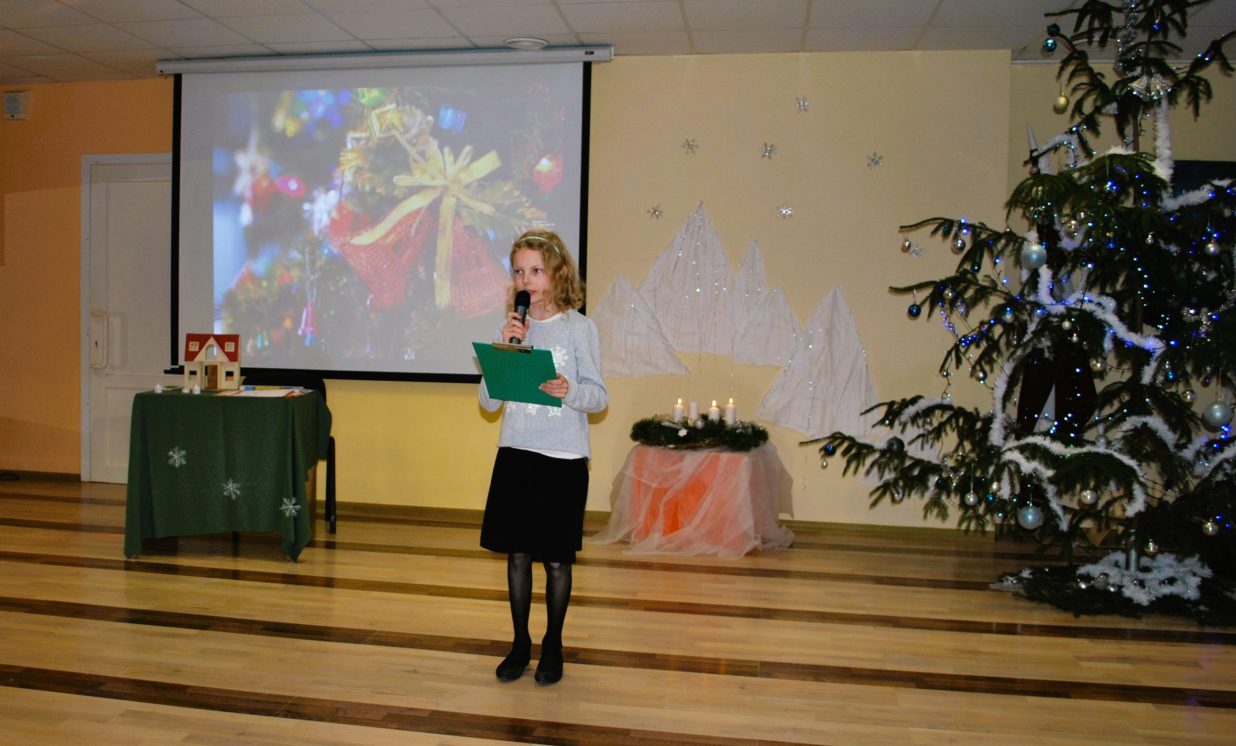 Pasākumā skatītājus iepriecināja sākumskolas vokālā ansambļa ”Ķipariņi”, instrumentālā ansambļa un skolas kora skanīgās dziesmas. Par Ziemassvētku noskaņu, mīlestību, svētku izjūtu vēstīja mūsu 1. un 3. klases daiļlasītāji. Savukārt Teātra pulciņa (2.kl. skolēni) aktieri atcerējās paši un atgādināja klātesošajiem Ziemassvētku tradīcijas.