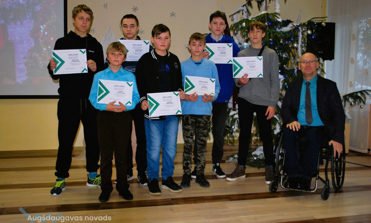 Atzinīgus vārdus par Naujenes pamatskolas paveikto 2023./24.m.g. 1.semestrī un labus vēlējumus nākotnei teica direktors Pāvels BROVKINS. Viņš apsveica arī datorspēļu sacensību un volejbola sacensību uzvarētājus un labākos spēlētājus.