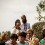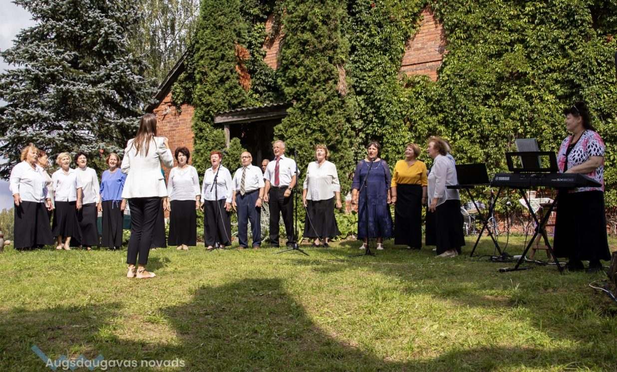 “Ziņģu lustes Eglainē” noslēgumā visi pasākuma dalībnieki un apmeklētāji vienojās kopīgā dziesmā - “Jo šeit ir Latvija, šeit ir Sēlija, šeit ir mūsu mīļā Eglaine…”