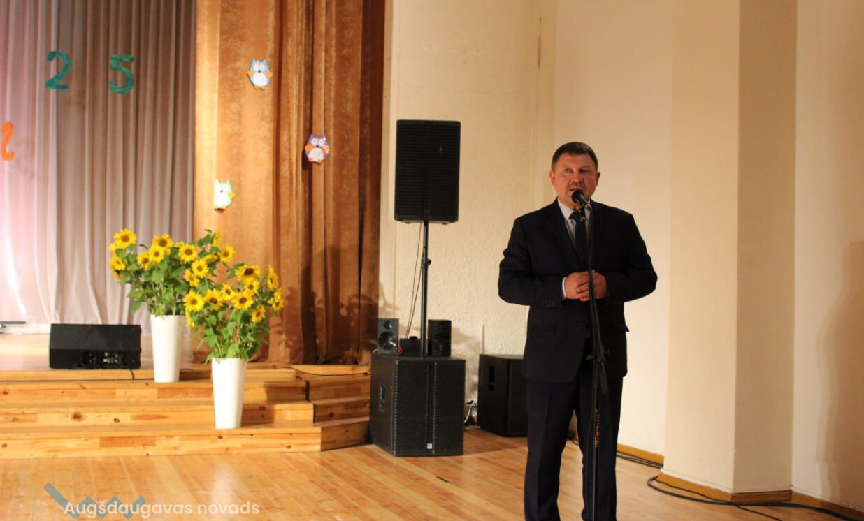 Skolas direktors Andris Meškovskis, uzrunājot skolēnus, aicināja tiekties uz jauniem mērķiem un būt neatlaidīgiem to sasniegšanā. Vecākiem direktors izteica pateicību par uzticību un atbalstu, savukārt skolotājiem vēlēja radošu enerģiju un izturību. Ar sveicieniem skolas saimei pievienojās arī Augšdaugavas novada pašvaldības domes deputāts Dzintars Pabērzs, vēlēdams panākumus gan mācībās, gan sportā, kā arī sekmīgu un ražīgu mācību gadu visiem. Skolas direktors kopā ar pašvaldības domes deputātu pasniedza dāvanas pirmklasniekiem, padarot viņu svētkus vēl gaišākus un neaizmirstamākus.