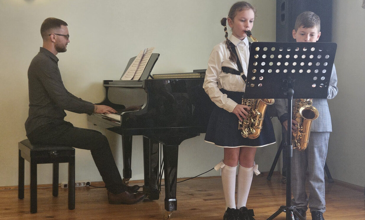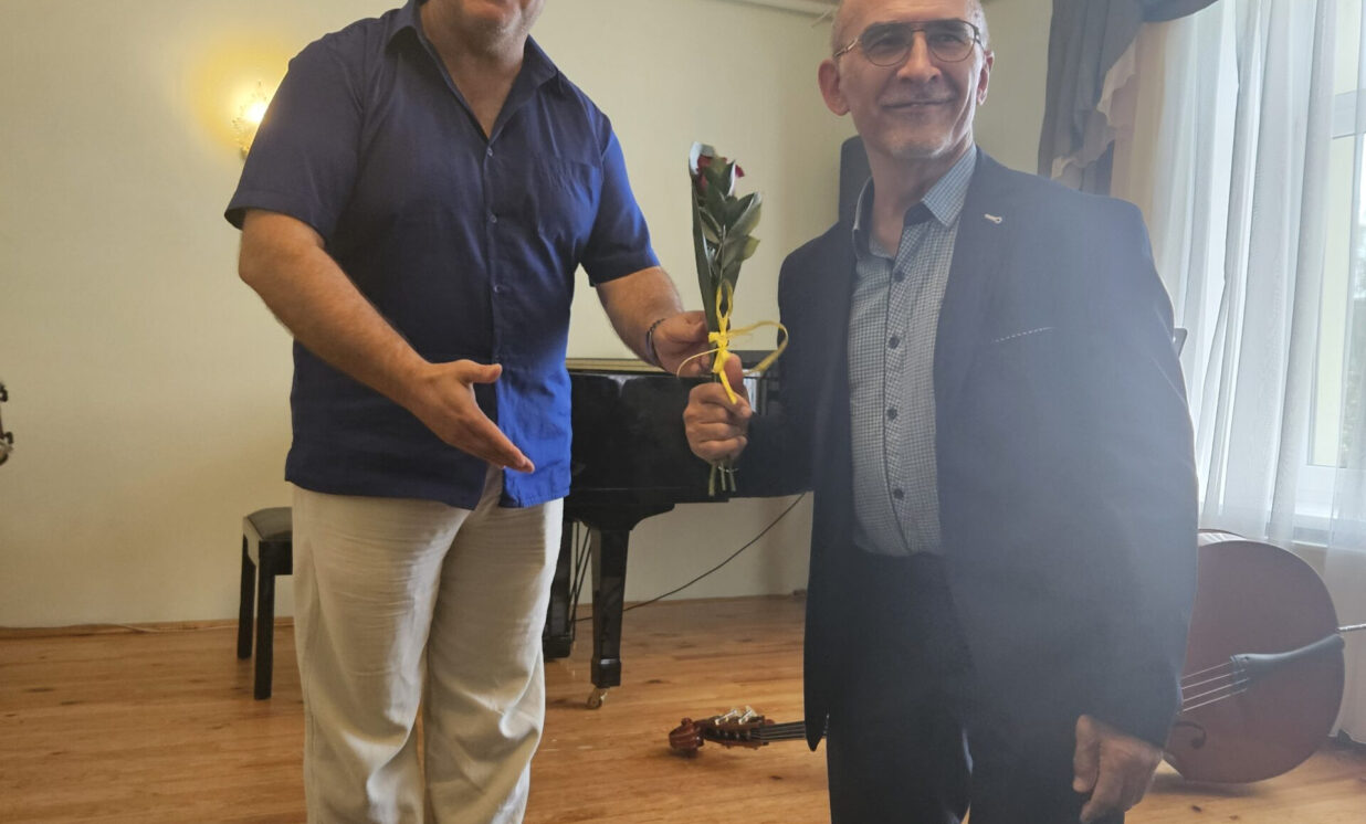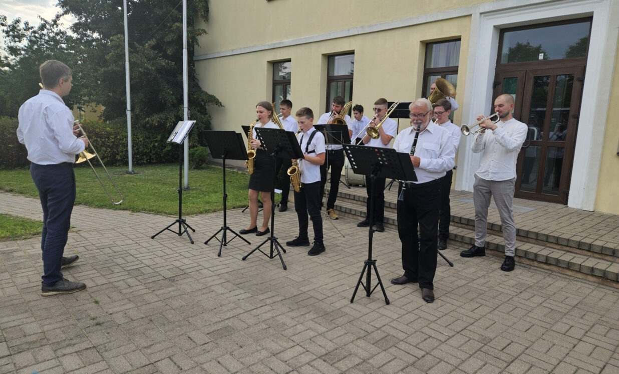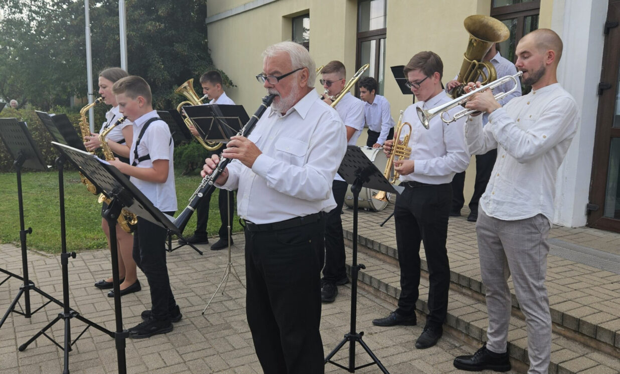 Naujenes Mūzikas un mākslas skolā pastāv vairākas tradīcijas un viena no tām ir sagaidīt skolas viesus ar pūšamo instrumentu orķestra uzstāšanos, orķestra vadītājs Marats Zaletilo.