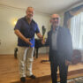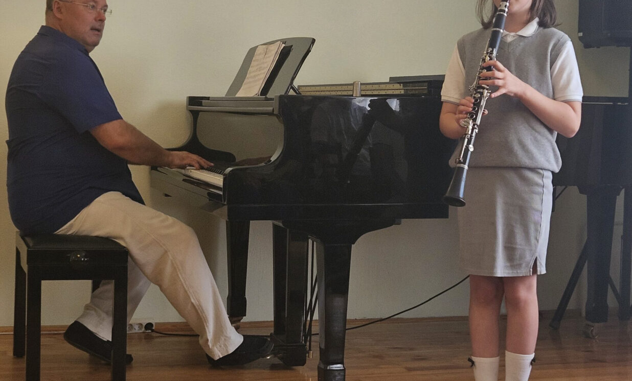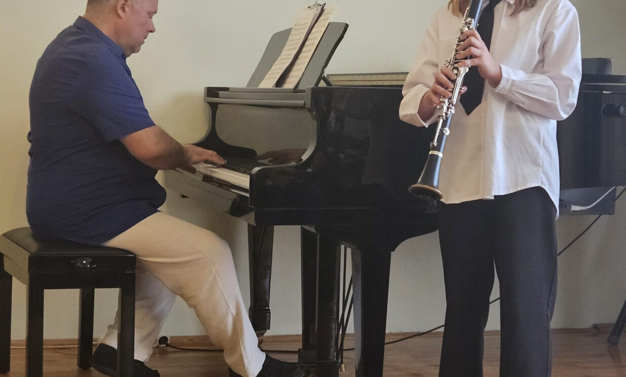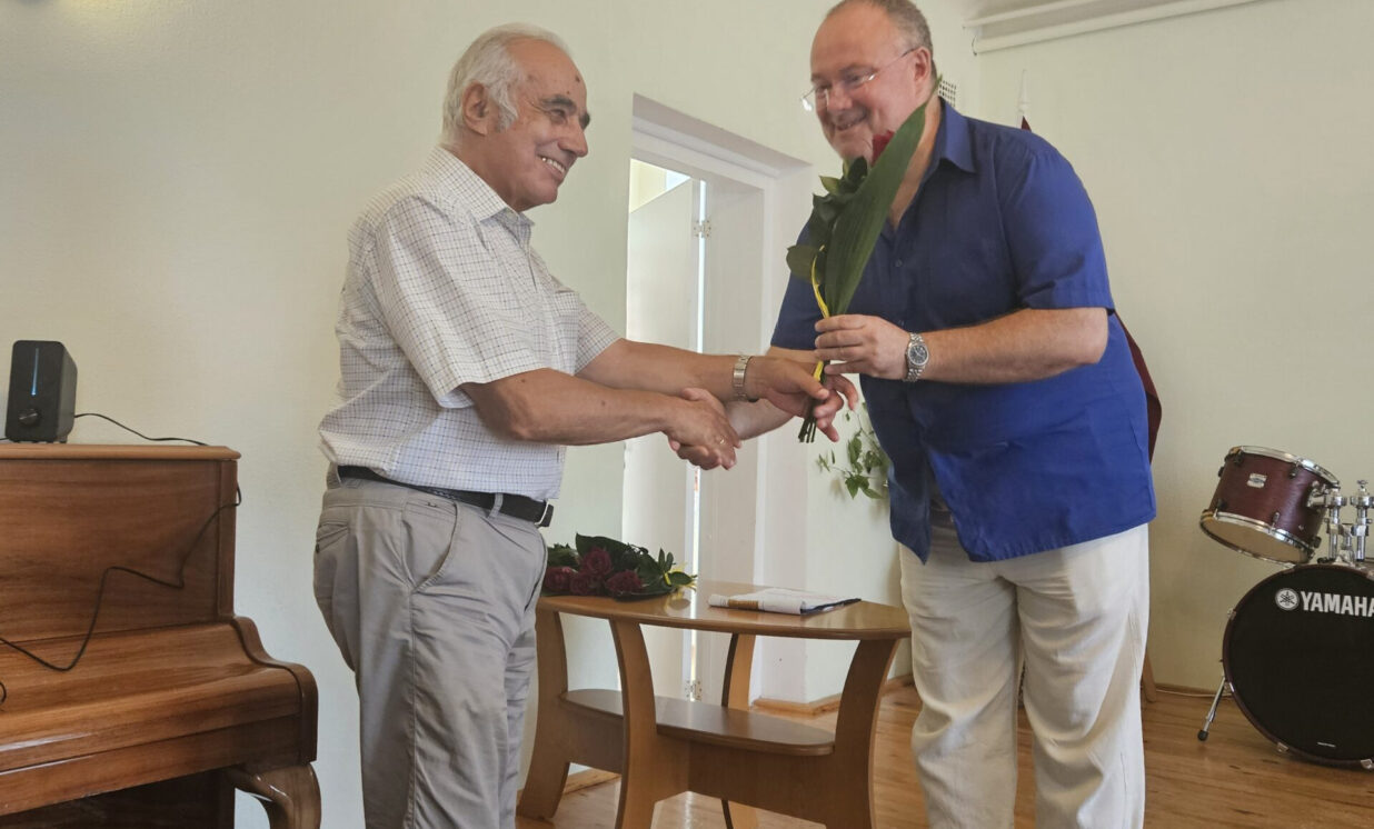 Naujenes Mūzikas un mākslas skolā pastāv vairākas tradīcijas un viena no tām ir sagaidīt skolas viesus ar pūšamo instrumentu orķestra uzstāšanos, orķestra vadītājs Marats Zaletilo.