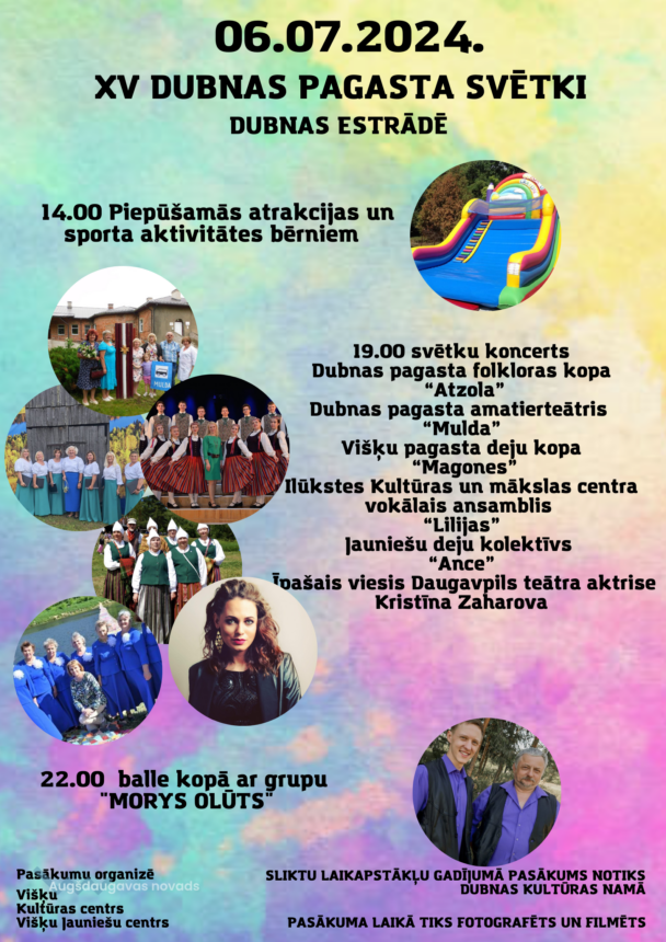 Plkst. 19.00 Svētku koncerts. Piedalās: Dubnas pagasta folkloras kopa “Atzola”, Dubnas pagasta amatierteātris “ Mulda”, Višķu pagasta deju kopa “Magones”, īpašais viesis Kristīna Zaharova.