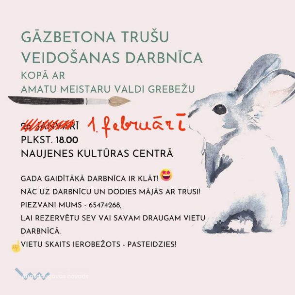 Kopā ar amatu meistaru Valdi Grebežu darbnīcā tiks veidots 2023. gada simbols. Darbnīcas vadītājs parādīs, izstāstīs un iemācīs kā darboties ar netradicionālu materiālu – gāzbetonu.