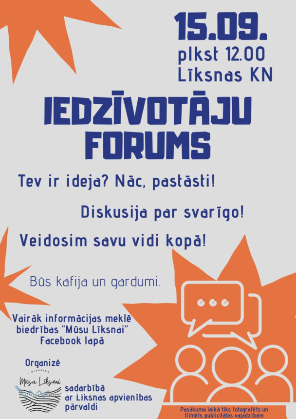 Iedzīvotāju forums Līksnā15.09.2024Kultūra Vieta: Līksnas pagasta kultūras namsLaiks:12:00Datums:15.09.2024