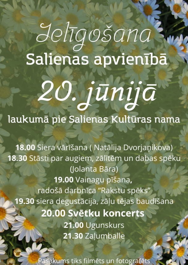 20. jūnijā laukumā pie Salienas Kultūras nama “Ielīgošana Salienas apvienībā”.