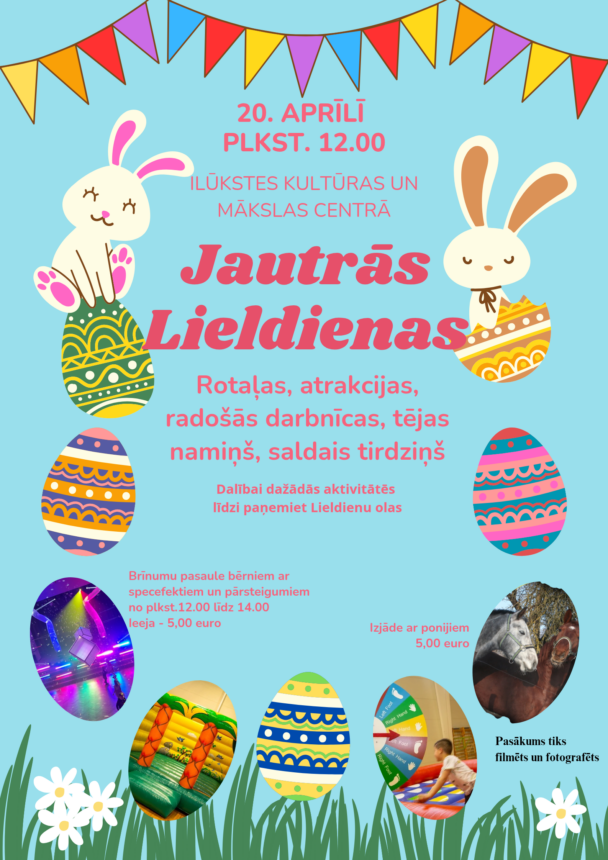 Jautrās Lieldienas, rotaļas, atrakcijas, radošās darbnīcas, tējas namiņš, saldais tirdziņš