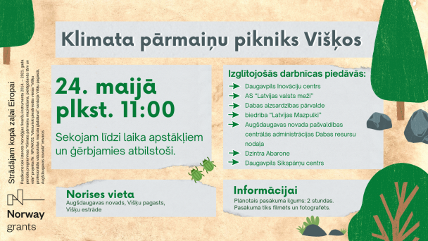 Klimata pārmaiņu pikniks24.05.2023Pašvaldība Vieta: Višķu estrādē, Višķu pagastsAtbildīgais:J.Valaine I.Zuģicka K.StraumeLaiks:11:00Datums:24.05.2023
