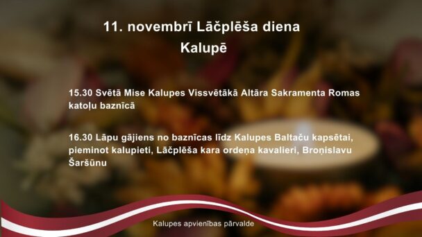 11. novembrī 15.30 Kalupes Vissvētākā Altāra Sakramenta Romas katoļu baznīcā dievkalpojums.