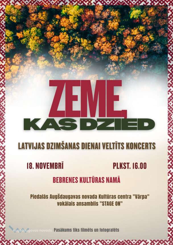 NovadsAktualitātesKalendārsLatvijas dzimšanas dienas koncerts “Zeme, kas dzied!” kopā ar Augšdaugavas novada Kultūras centra “Vārpa” vokālo ansambli “Stage On”