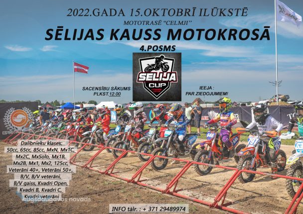 Motokross “Sēlijas kauss”15.10.2022Sports Vieta: Pilskalnes pagastsAtbildīgais:G.KucinsLaiks:10:00Datums:15.10.2022