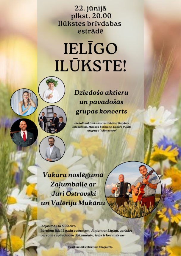 22. jūnijā 20.00 Ilūkstes brīvdabas estrādē “Ielīgo Ilūkste!”.
