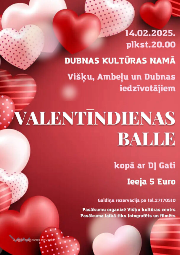 Valentīndienas diskotēka kopā ar DJ Gati14.02.2025Kultūra Vieta: Dubnas pagasta kultūras namsLaiks:20:00Datums:14.02.2025