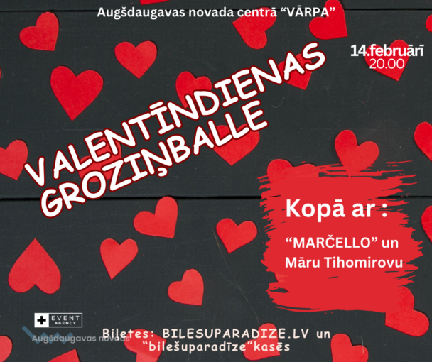 Valentīndienas groziņballe14.02.2025Kultūra Vieta: Augšdaugavas novada kultūras centrs "Vārpa"Laiks:20:00Datums:14.02.2025