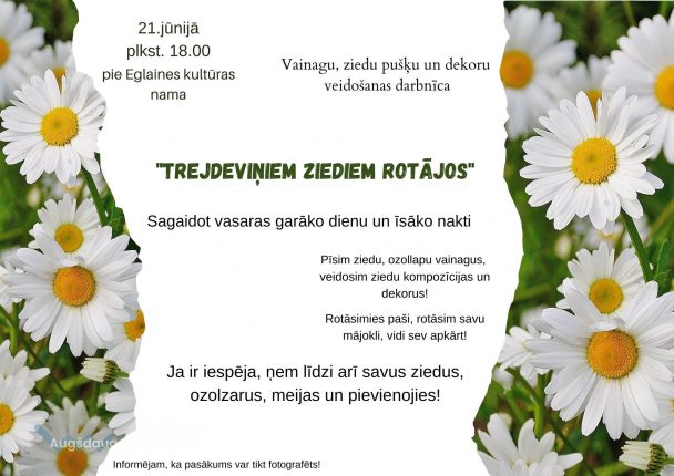 Ziedu vainadziņu pīšanas un pušķu veidošanas darbnīca “Trejdeviņiem ziediem rotājos”