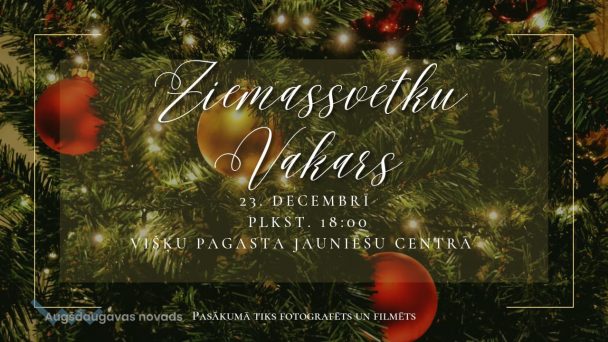 Ziemassvētku vakars23.12.2022Jaunatne Vieta: Višķu pagasta jauniešu centrāLaiks:18:00Datums:23.12.2022
