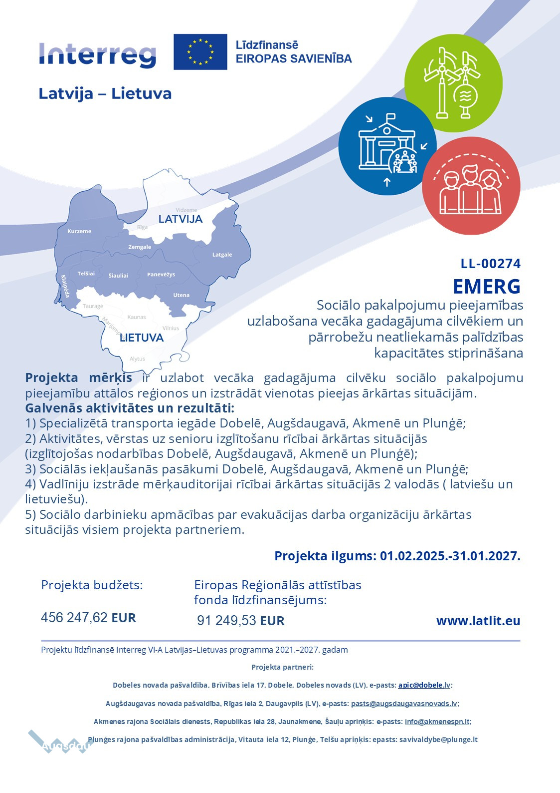 2025.gada 9.aprīlī pašvaldība kā vadošais projekta partneris organizēja Interreg VI-A Latvijas-Lietuvas programmas 2021.-2027.gadam divu projektu atklāšanas pasākumus: “Sociālo pakalpojumu pieejamības uzlabošana vecāka gadagājuma cilvēkiem un pārrobežu neatliekamās palīdzības kapacitātes stiprināšana (“EMERG” LL-00274) un “Ilgtspējīgu tūrisma produktu attīstība, nodrošinot projekta partneru vajadzības”(“CrossTour”LL-00276). Projekta partnerus ar veiksmes vēlējumu uzrunāja domes priekšsēdētāja vietnieks G. Safranovičs, ar novadu iepazīstināja Kultūras pārvaldes vadītāja Nadežda Čerpaka. Dalībnieki sadalījās grupās, lai apspriestu projektos plānotās aktivitātes. Tikšanās nobeigumā visi dalībnieki apmeklēja Dobeles pili.