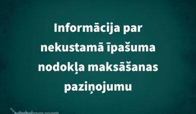 Nekustamā īpašuma nodoklis22.11.2024Saņemiet NĪN paziņojumus oficiālajā elektroniskajā adresē Lasīt vairāk