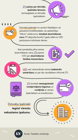 Piespiedu dalītā īpašuma izbeigšanas procesā iesaistīto pušu veicamās darbības apkopotas Tieslietu ministrijas infografikā