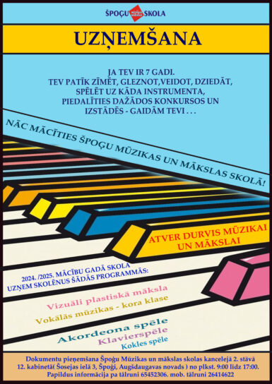 Špoģu Mūzikas un mākslas skola uzsāk izglītojamo uzņemšanu 2025./2026. mācību gadam