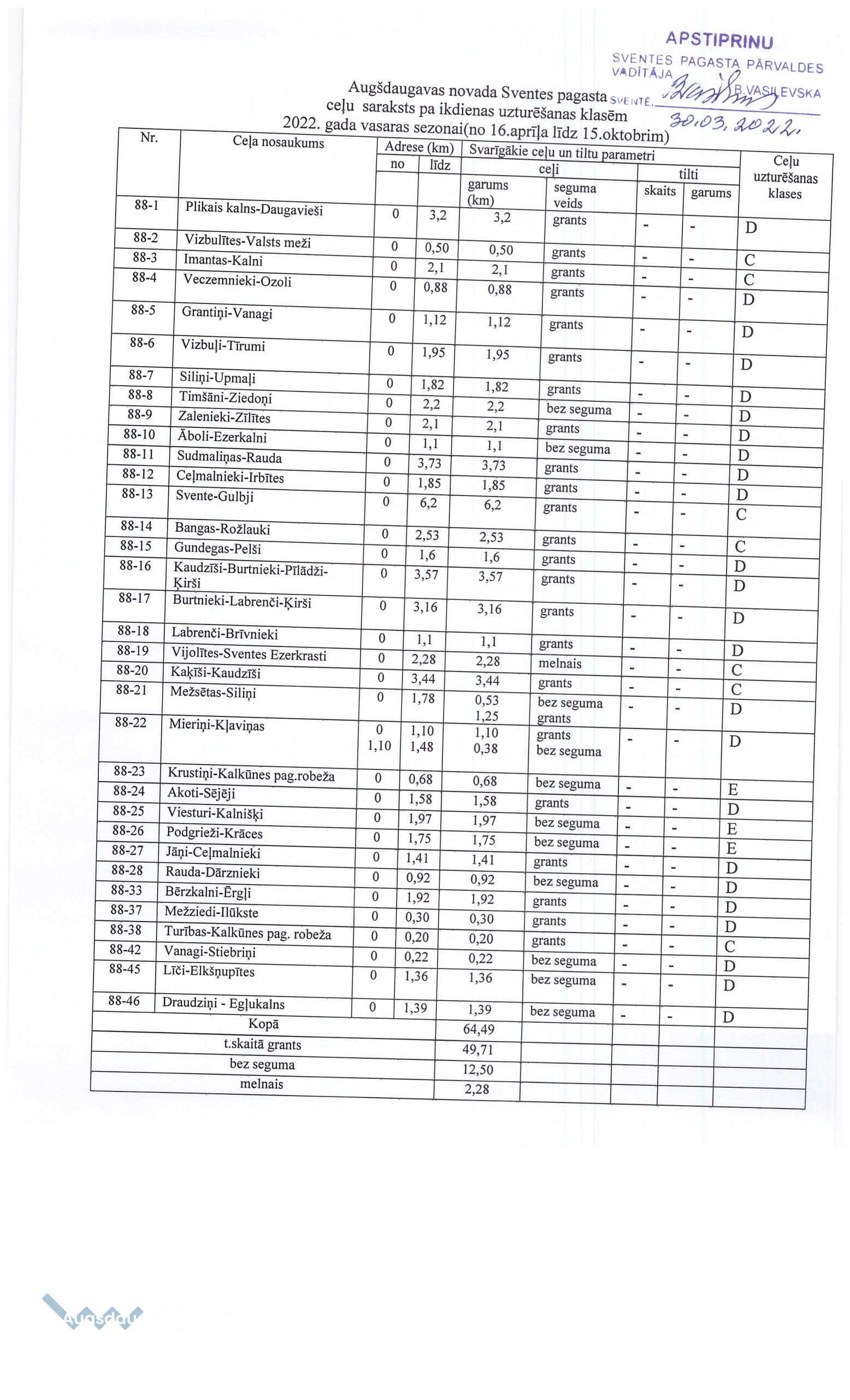 | Bebrenes pagasts | C grupas ceļi vasara D, C, E | Ziema |