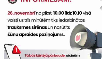 26.novembrī visā Latvijā iedarbinās trauksmes sirēnas un nosūtīs šūnu apraides paziņojumu